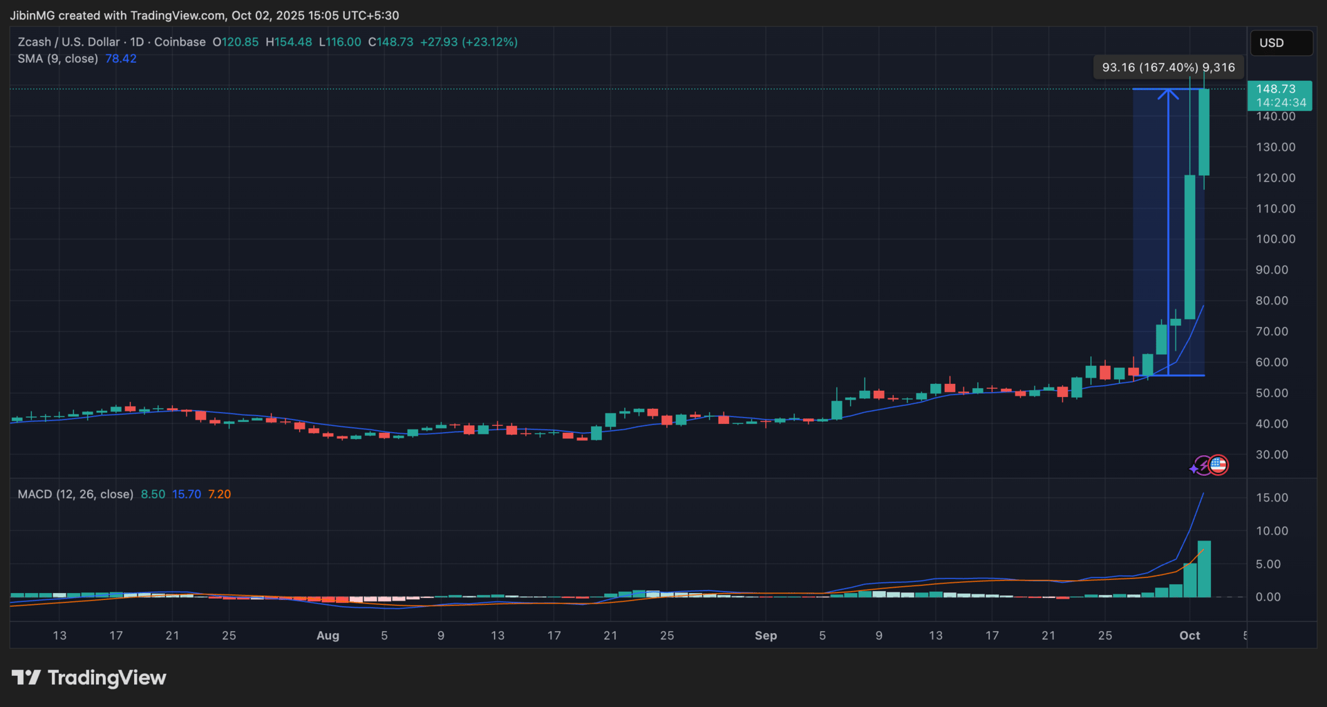 At the time of writing, ZEC was valued at $148.73, up over 160% in less than a week. Its technical indicators underlined the bullishness of the market. While the Moving Average crept under the price candles, the MACD line diverged away from the Signal line against the backdrop of green histograms.