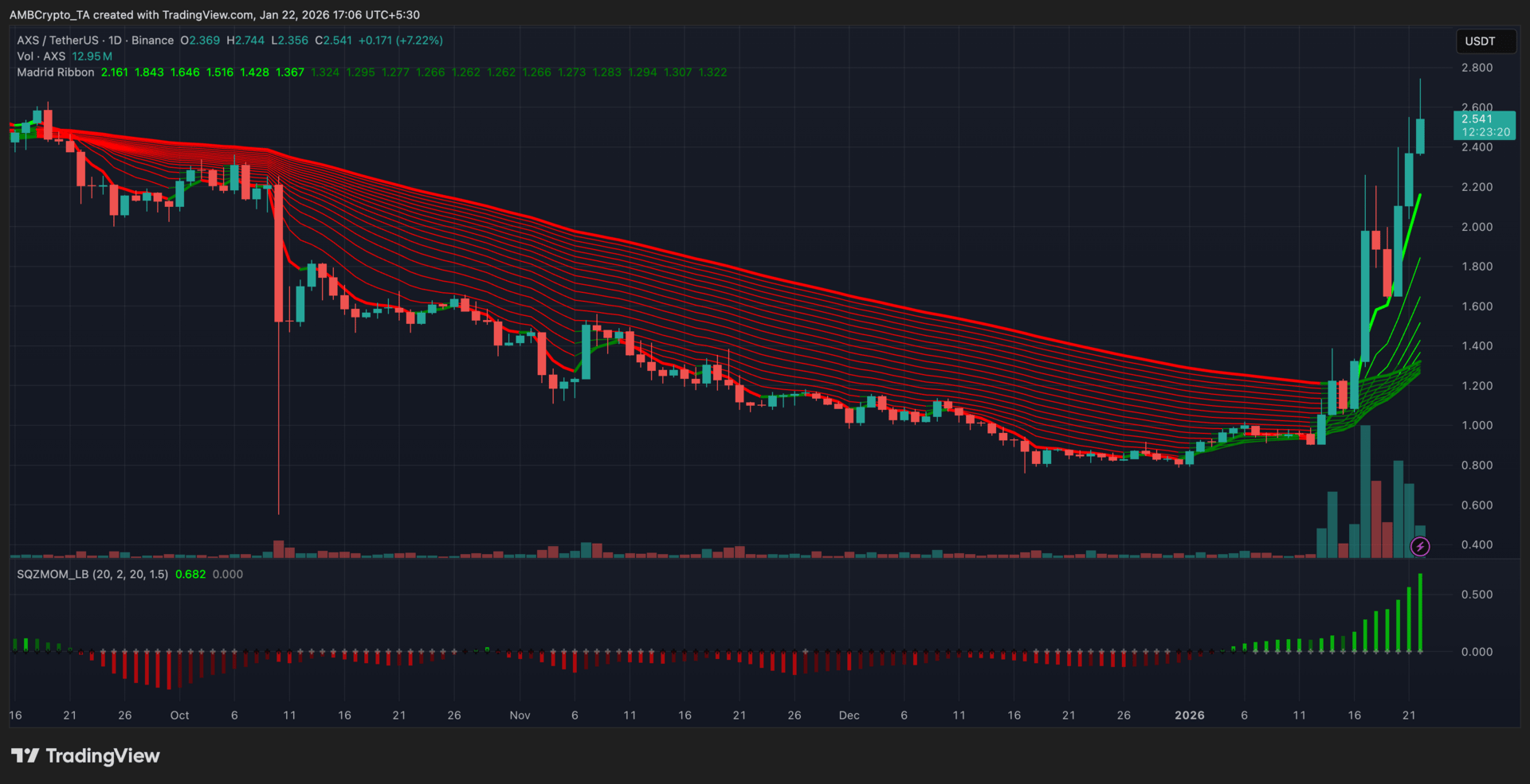 AXS climbed over the last session, extending its sharp recovery and pushing price into the $2.50 zone as momentum accelerated.