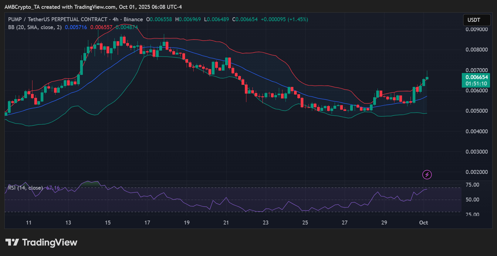 Its bullish structure was also reflected in the price charts. Over the past day, PUMP rose over 23%, trading at $0.006640. The RSI reflected its bullish trajectory, showing a breakout after a long period of consolidation - a positive sign for traders looking to scoop up PUMP.