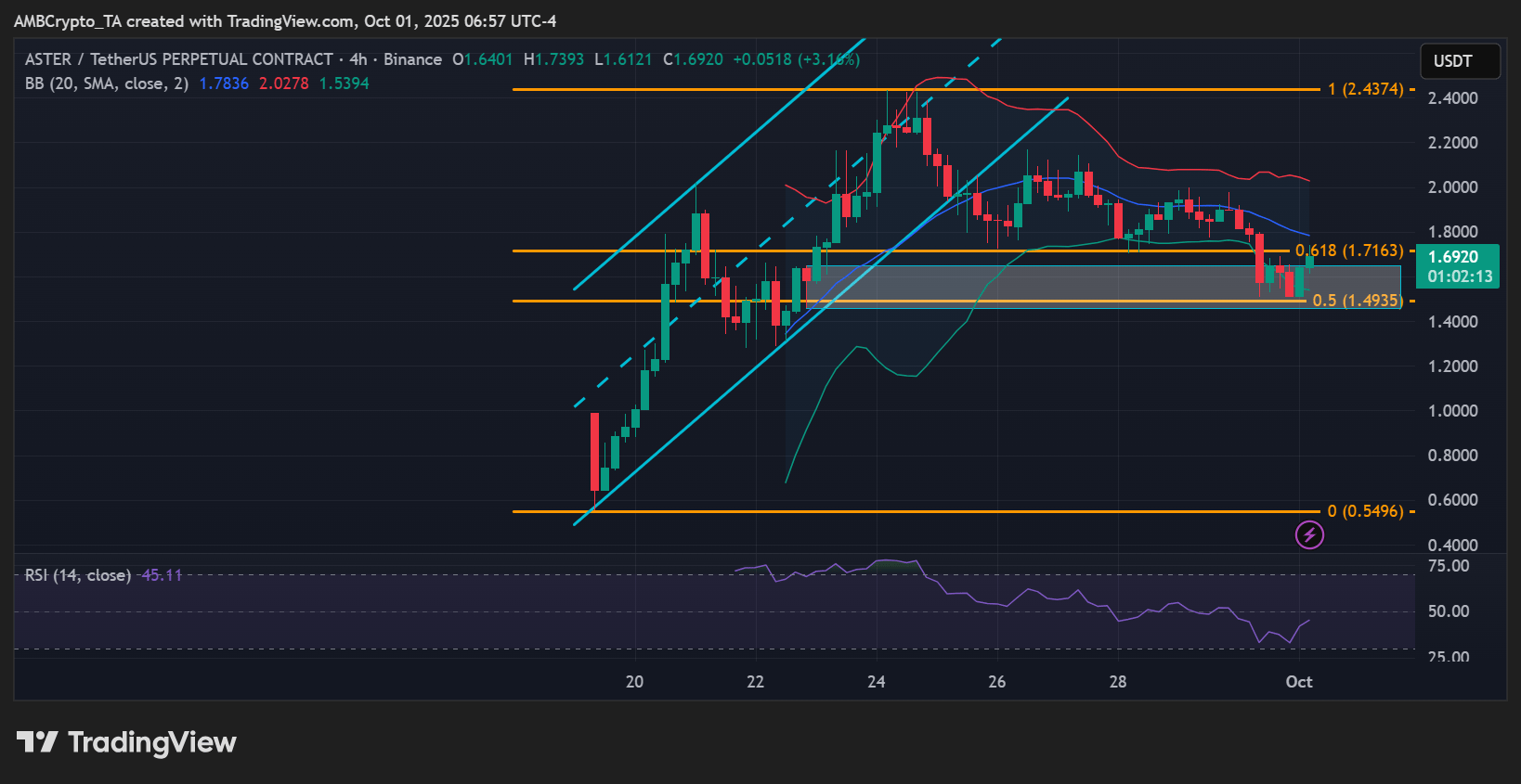 However, all is not lost yet. A breakout of the current resistance at $1.70 can cause ASTER to reach $1.80 with ease, following which the price may even cross the $2 level.